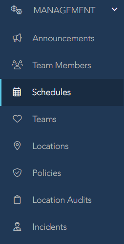 1. Under your “MANAGEMENT” section, click on the “Schedules” option.