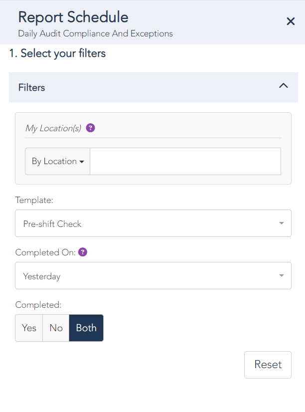 - select the day/s of the week that you would like the report to run