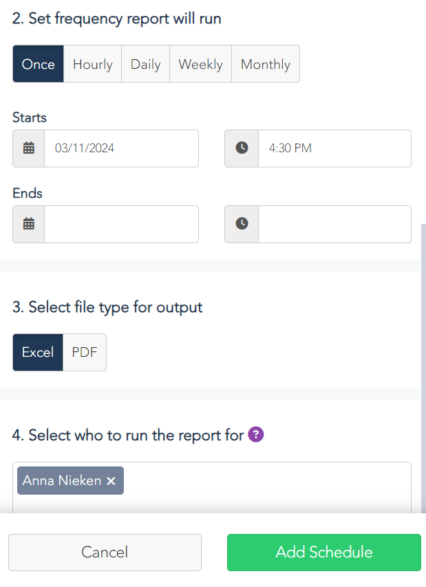 - Select report frequency