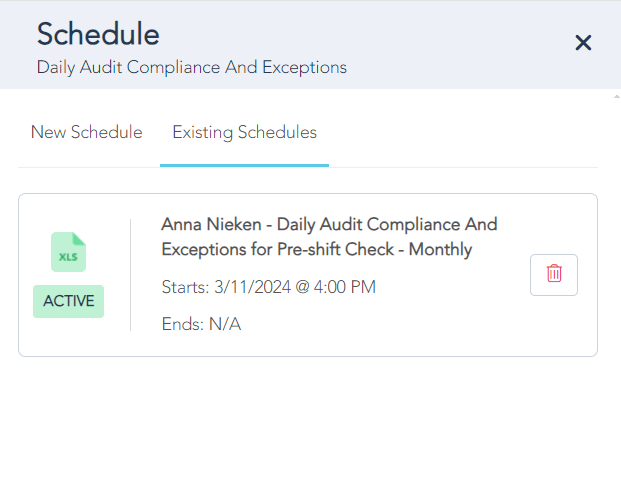 - You will now see a "Report Schedule" side panel where you can schedule new reports and view existing schedules.