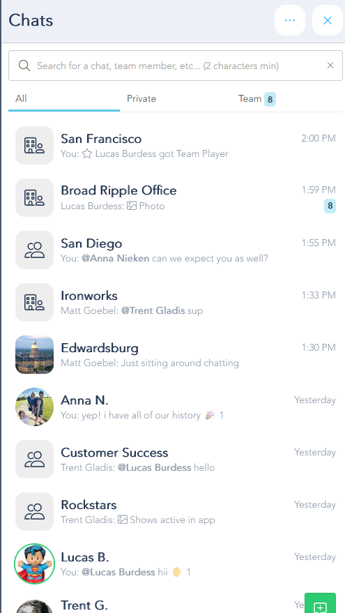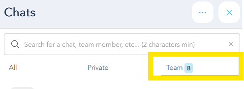 The Team Chat feature enables team members to communicate with others within their respective teams. Chats are organized by the teams you are affiliated with, making it easy to keep conversations focused. You can access Team Chat from the chat bubbles in the top right-hand corner.