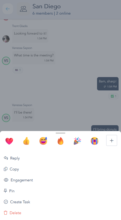 Creating a task from a message helps ensure you don’t forget important action items shared in chat—such as scheduling a revision, updating a timecard, or refilling the soap dispensers.