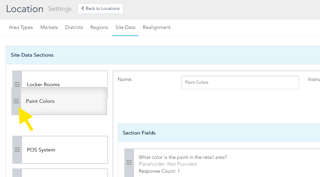 PRO TIP: Did you add a Section or Field out of order? You can drag and drop the sections and fields using the hamburger icons. Click on the symbol to drag the fields or sections up and down to their desired location.