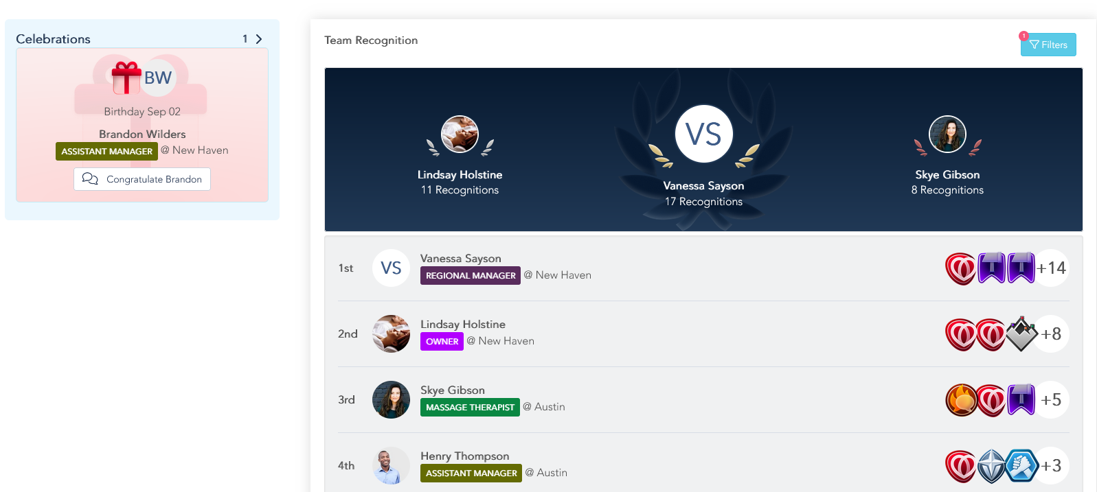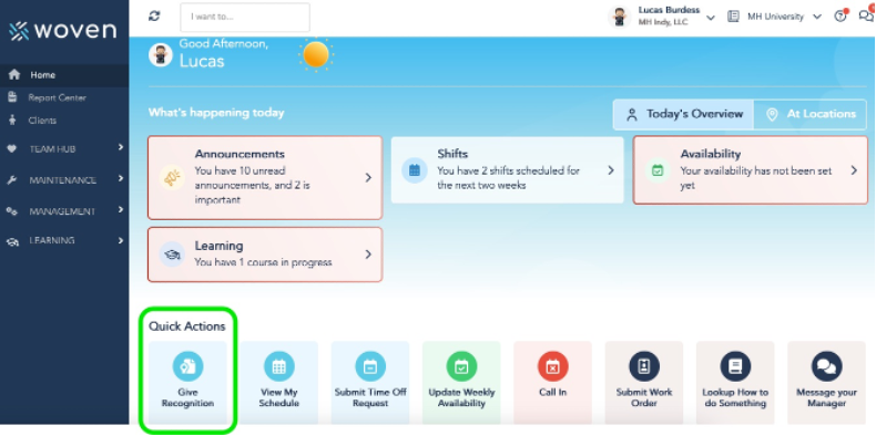 Recognition is a great way to share recognition and show appreciation to Team Members and colleagues.