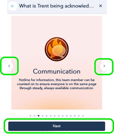 - Choose the Recognition you wish to send (swipe or click the arrows to see all of the options) and click Next.