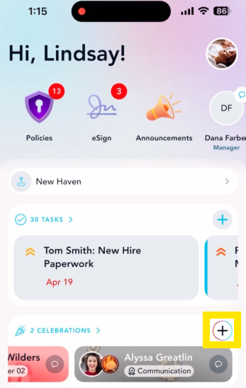 By clicking on the + sign in the Celebrations section: