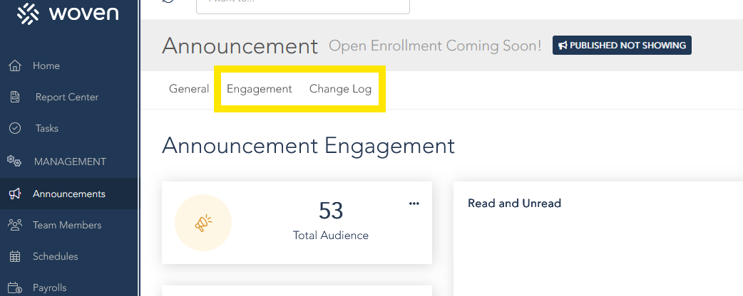 - Unread: The announcement has not been opened by the team member.