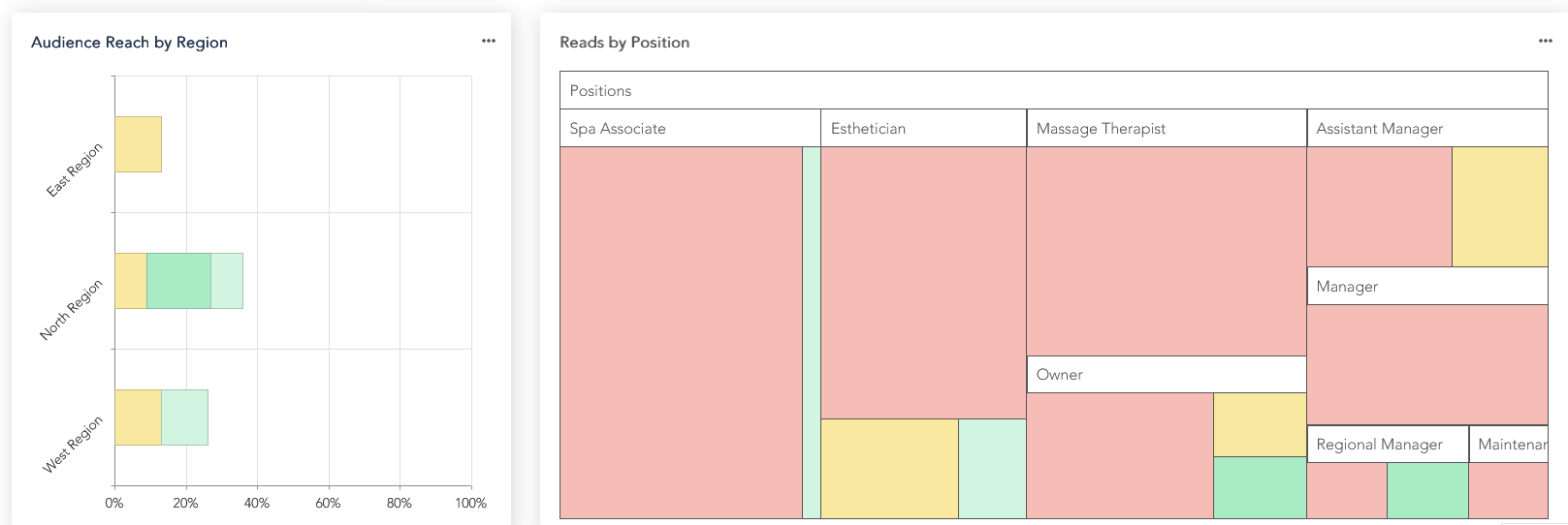 Use the Audience Reach by Region and Reads by Position charts at the bottom of the Engagement page to track how your team is interacting with your announcements—who's reading, and where engagement is strongest.