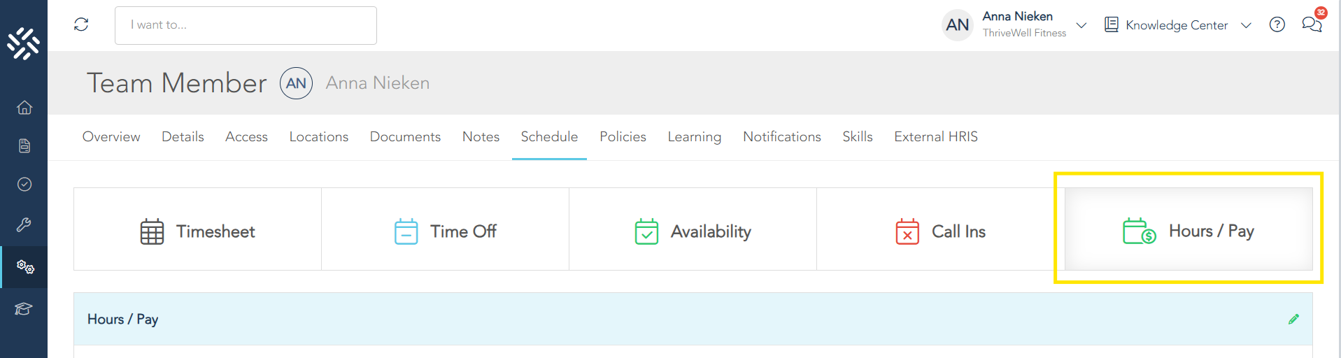 In your Team Members' profiles in the Hours/Pay tab, you can manage Pay Rates for each of your Team Members.