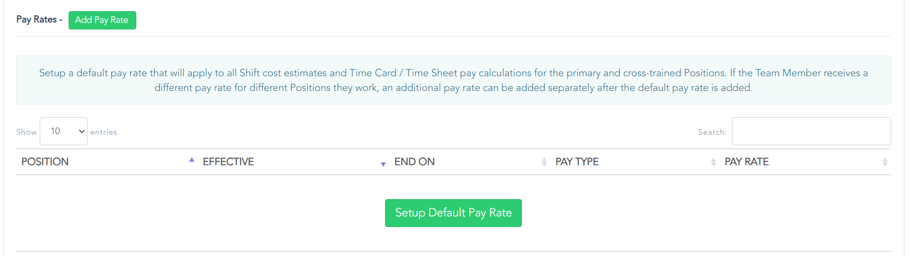 Additional pay rates can be added by selecting "Add Pay Rate". These pay rates will target a specific position.