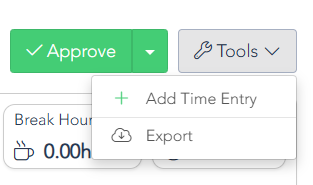 - From the Timesheet page, select the "Tools" button and "+Add Time Entry".