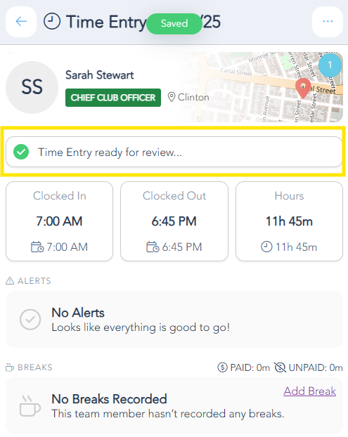 - Check "Time Entry ready for review..."