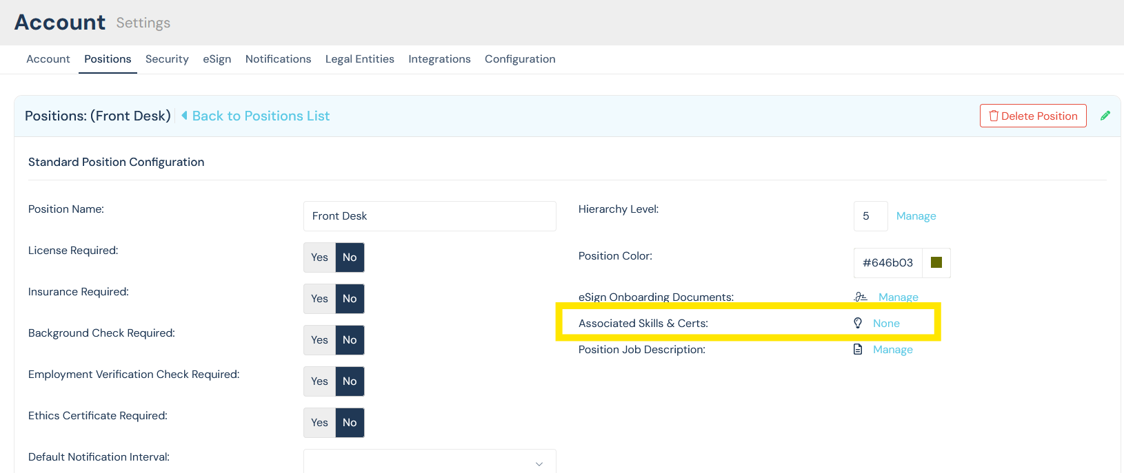 - Link credentials to positions so you know which certifications are required (or nice to have) for each role.