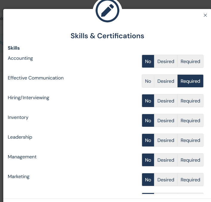 - Mark certifications as Required or Desired for that role.